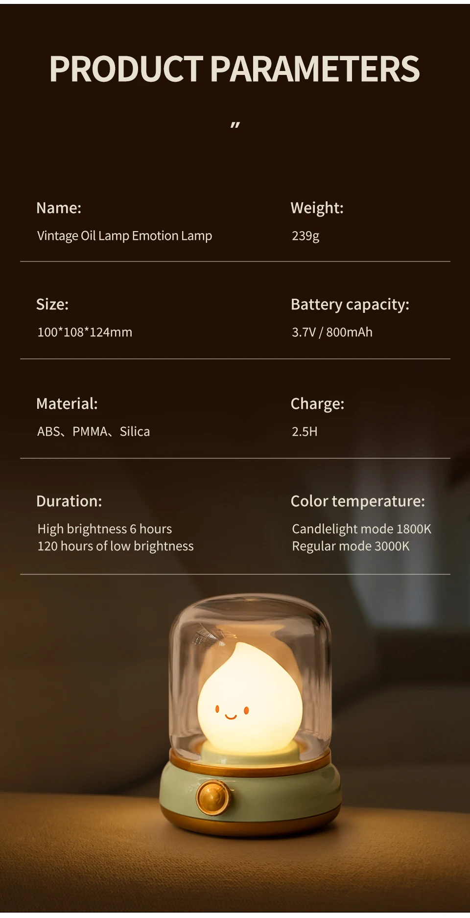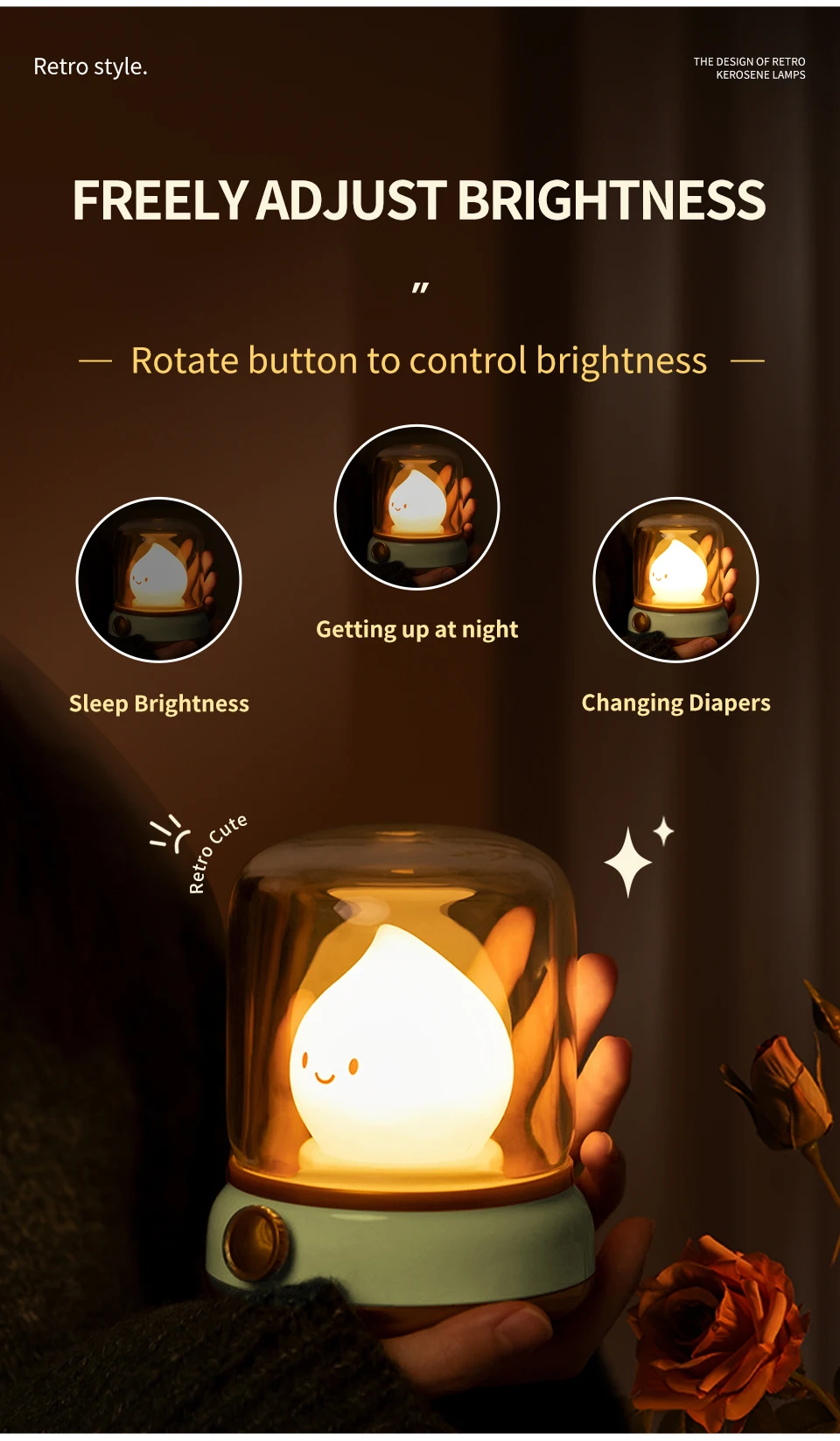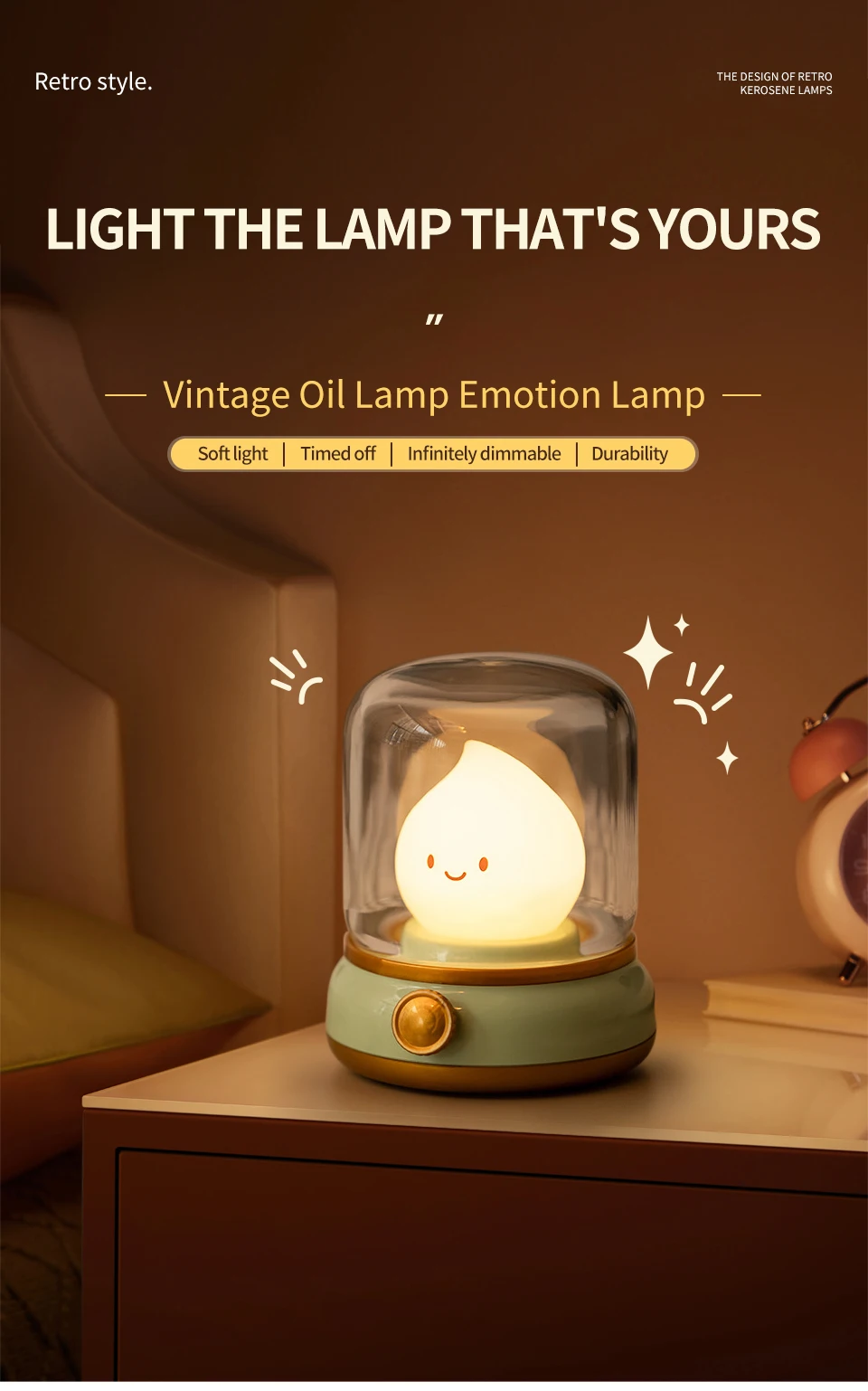 Retro Oil Night Lamp USB Charging Dimming Timing Nightlights Soft Light Baby Sleeping Bedroom Bedside Emotional Lighting
